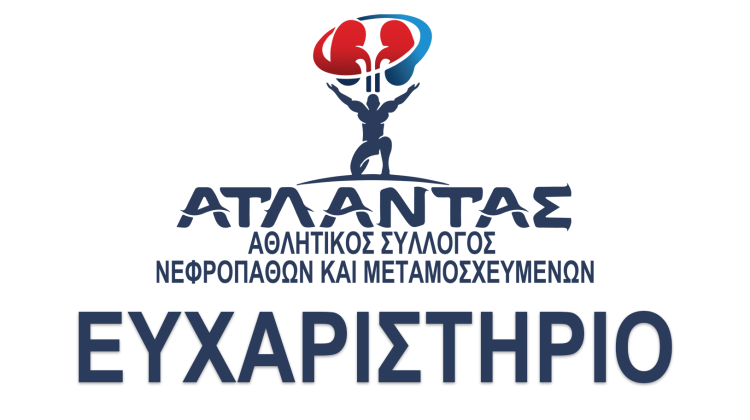 Το Δ.Σ., οι αθλητές και τα μέλη του Αθλητικού Συλλόγου Νεφροπαθών και Μεταμοσχευμένων “ΑΤΛΑΝΤΑΣ” θα θέλαμε να εκφράσουμε τις θερμές ευχαριστίες μας στην εταιρία AlphaDynamic Pumps SA που δραστηριοποιείται στο χώρο εμπορίας επαγγελματικών αντλιών (κ. Ανδρέα Χρυσάφη και κα. Ευαγγελία Μπάκου) για την οικονομική ενίσχυση του συλλόγου μας.